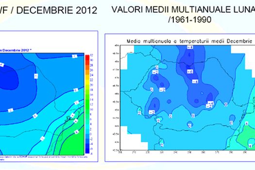 În luna decembrie, regimul termic va fi normal în cea mai mare parte a ţării, iar în regiunile sud-estice sunt posibile medii ale temperaturilor mai ridicate decât normele climatologice.
