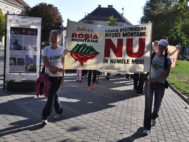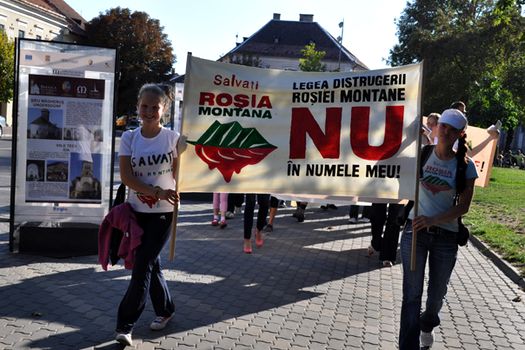 La Alba Iulia, aproximativ 150 de persoane s-au adunat în faţa Cinematografului „Dacia” din oraş, de unde au pornit într-un marş pe Bulevardul Transilvaniei şi pe alte străzi din apropiere. Participanţii la miting au purtat steaguri tricolore şi pancarte cu mesaje precum „Vrem proiecte durabile! Nu acceptăm poluarea! Salvaţi Roşia Montană!”, „Trădarea de ţară în aur se măsoară”. Acţiunea s-a încheiat după aproximativ două ore.