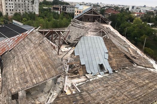 La faţa locului, sunt prezenţi şi reprezentanţi ai administraţiei publice locale, pentru a găsi o soluţie pentru îndepărtarea elementelor aflate în pericol de cădere.