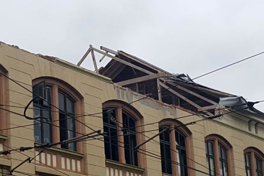 Din cauza vântului puternic din Capitală, unele elemente ale construcţiei fabricii de bere de pe strada George Coşbuc sunt în pericol de cădere, astfel că pompierii intervin cu o autoscară, au declarat reprezentanţii Inspectoratului pentru Situaţii de Urgenţă (ISU) Bucureşti-Ilfov.