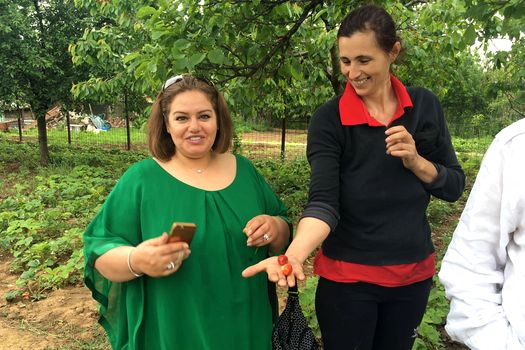 Şi dacă tot a fost în livada unor localnici, Mariam a putut gusta şi căpşuni. A făcut nenumărate poze pe care spune că le va trimite repede familiei.