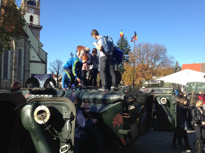 Chiar dacă expoziţia de tehnică şi echipamente militare s-a deschis la 11.00, curioşii au sosit chiar mai devreme să vadă autospecialele de poliţie militară şi autospecialele de intervenţii care au fost expuse. Au mai putut fi admirate transportoarele blindate, drone, sateliţi, costume de protecţie şi sisteme portabile de scanare cu raze X.