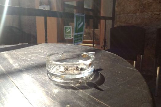 Patroana unui bar de pe strada Universităţii, situat în apropierea Universităţii „Babeş-Bolyai” (UBB), a amplasat pentru fumători mai multe scrumiere pe bordura unui geam, astfel încât aceştia să nu arunce pe jos mucurile de ţigară.