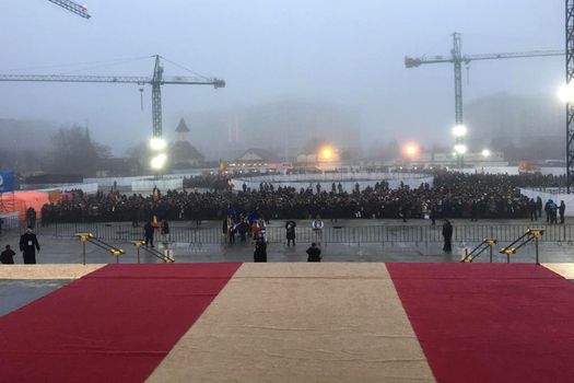 Oamenii, care au venit din toată ţara pentru a participa la sfinţirea altarului Catedralei Mântuirii Neamului, au aşteptat ore bune pe platoul din faţa Catedralei Mântuirii Neamului pentru a vedea ceremonia pe ecranele special montate. Mulţi au venit îmbrăcaţi în costume populare, având steaguri tricolore.