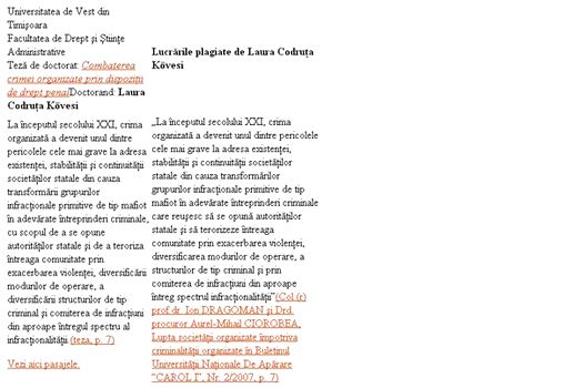 „Sigur că are trimiteri la surse, acolo are mai multe trimiteri la multe articole publicate sub numele de Lascu Codruţa şi au zis că nu sunt ale ei, dar între timp şi-a schimbat numele şi a devenit Kovesi. Astea ar fi unele. Astăzi am văzut pe Internet nişte pasaje, chipurile, care ar fi preluate dintr-o lucrare a unuia Dragoman de la Colegiul Naţional de Apărare, numai că pasajul respectiv nu e unul semnificativ care intră sub protecţia dreptului de autor, pentru că ar trebui să vă uitaţi în lege să vedeţi ce intră sub protecţia legii dreptului de autor. Pasajul respectiv îl găsiţi în orice expunere de motive a unei legi sau declaraţii internaţionale privitoare la criminalitatea organizată care spunea cam aşa <în condiţiile globalizării criminalitatea organizată a devenit o industrie>. Un lucru banal pe care nu l-a descoperit Dragoman şi sunt convins că l-a preluat şi el dintr-un document internaţional şi care nu intră sub incidenţa protecţiei dreptului de autor”, a declarat profesorul.