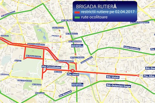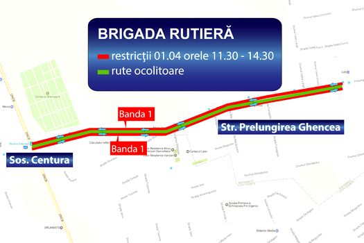 „În conformitate cu avizul Comisiei Tehnice de Circulaţie din cadrul Primăriei Municipiului Bucureşti, în ziua de 01 Aprilie 2017, între orele 11:30 – 14:30, se va desfăşura marş, pe următorul traseu: – Prelungirea Ghencea – Str. Prelungirea Ghencea, banda I de circulaţie, pe sensul de deplasare către Şos. de Centură, retur de la judeţul Ilfov deplasare pe banda I de circulaţie pe sensul de deplasare către Str. Braşov – Str. acces Cartierul Latin. Deplasarea în marş se va face pe banda I de circulaţie în sensul de deplasare”, transmite Brigada de Poliţie Rutieră.