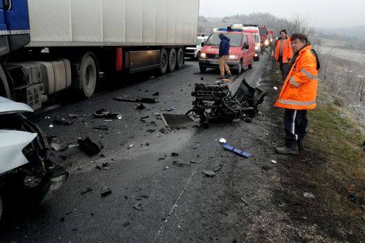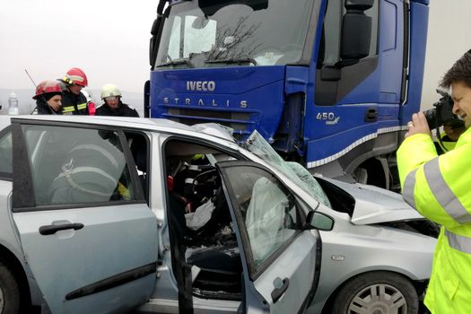 Purtătorul de cuvânt al ISU Hunedoara, Anemona Doda, a declarat că un bărbat a murit, iar cei trei copii şi soţia sa au fost răniţi în urma impactului dintre două autoturisme şi un tir.
