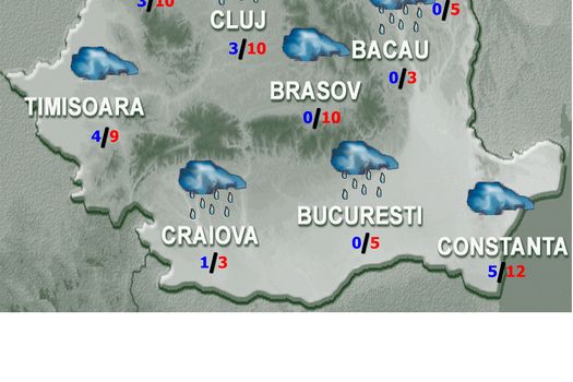 Vremea se va menţine rece pentru această dată, deşi temperatura aerului va fi în creştere şi în regiunile extracarpatice. Cerul va avea înnorări şi temporar va ploua în nordul şi centrul ţării, local în vest şi izolat în rest. În zona de munte precipitaţiile vor fi mai ales sub formă de lapoviţă şi ninsoare şi vor fi condiţii de polei. Vântul va sufla slab şi moderat, cu unele intensificări pe crestele montane. Temperaturile maxime se vor încadra între 5…6 grade, izolat, în jumătatea de nord a ţării şi 10…12 grade în regiunile sudice. Temperaturile minime vor fi cuprinse între -2 şi 4 grade. Dimineaţa şi noaptea, pe arii restrânse, se va semnala ceaţă.