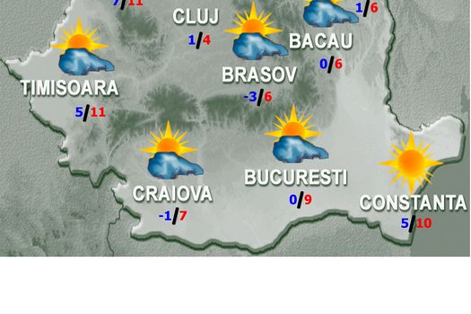 Vremea se va încălzi, astfel că maxima termică va fi de 9…10 grade, iar minima de 0…1 grad. Cerul va fi variabil, iar vântul va sufla slab până la moderat.