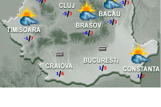 Temperaturile maxime se vor încadra între -1…0 grade în nordul Moldovei şi în estul Transilvaniei şi 6…7 grade în zona de deal din Crişana şi Banat; minimele termice vor fi cuprinse în general între -10 şi 0 grade. Izolat se va semnala ceaţă.