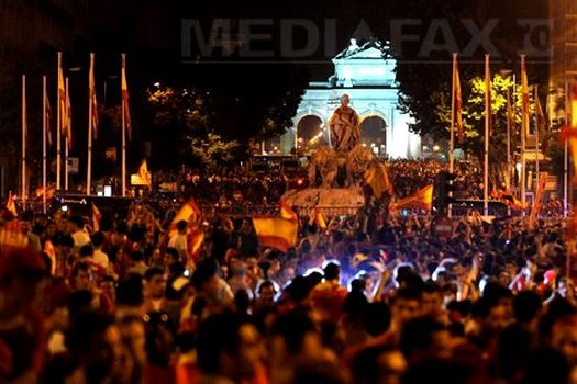 „Viva España!” şi „Spanioli, Spanioli, Noi suntem spanioli!” au răsunat la unison din mii de case, baruri şi pieţe pline ale ţării, într-un concert imens de claxoane.