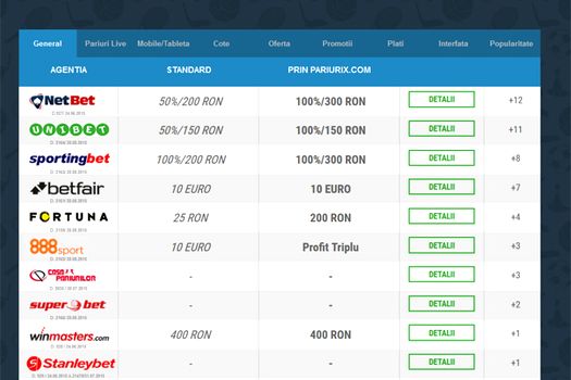 Pe lângă toate acestea, comunitatea pariorilor din România a obţinut un bonus de 50%, până la 200 RON, valabil pentru utilizatorii care se înregistrează prin link-urile comunităţii. Oferta standard a agentiei este bonus de 50% din primul depozit pana la 150 RON.