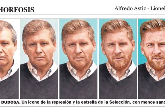 Tot săptămâna trecută, FIFA a anunţat că i-a anulat pedeapsa lui Messi, care a fost suspendat timp de 4 meciuri pentru că a înjurat un arbitru în timpul unei partide. Prin urmare, în publicaţia argentiniană Diario Perfil apare o imagine care îl arată pe Astiz care se transformă încet în Messi, sub titlul „METAMORFOZA”.