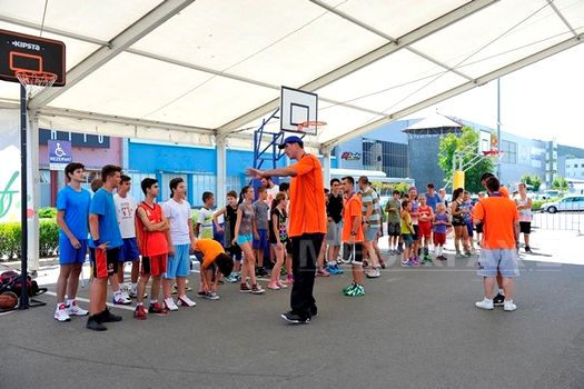 „În baschet ceea ce trebuie să faci este să munceşti şi să repeţi acelaşi lucru până reuşeşti să faci ce vrei tu cu mingea”, le-a spus Mureşan copiilor prezenţi în tabără.