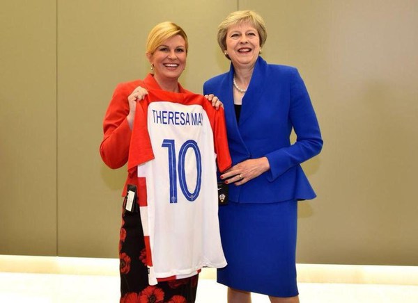 Premierul de la Londra a primit un tricou cu numărul 10 şi numele Theresa May.