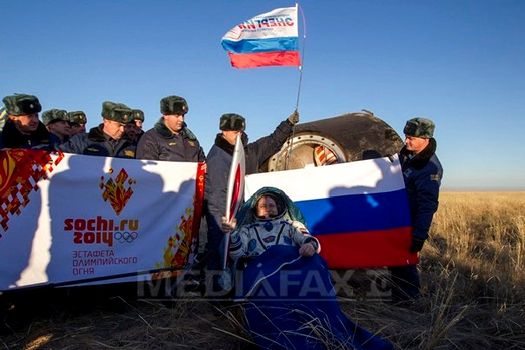 Reveniţi dintr-o misiune de 166 de zile la bordul Staţiei Spaţiale Internaţionale (ISS), rusul Fiodor Iurcihin, italianul Lucas Parmitano şi americana Karen Nyberg au revenit pe Pământ aşa cum era prevăzut, la ora 02.49 GMT (04.49 ora României), cu torţa olimpică, scoasă în spaţiu, sâmbătă, pentru prima dată în istorie.