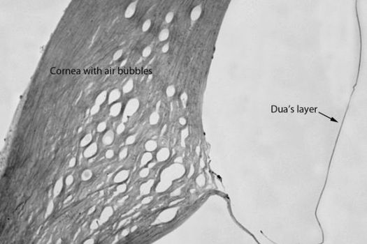 Experimentele au constat, mai exact, în injectarea de mici bule de aer în cornee pentru separarea în straturi diferite. Oamenii de ştiinţă au analizat aceste straturi la microscopul electronic, ceea ce le-a permis să le studieze la dimensiuni de mii de ori mai mari faţă de cele naturale. Astfel au ajuns la stratul lui Dua.