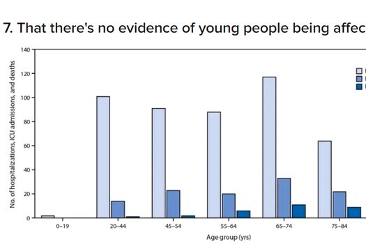 ADEVĂR: Acest grafic al spitalizărilor COVID-19, internărilor în UCI şi a deceselor pe grupe de vârstă în SUA din 12 februarie – 16 martie spune altceva.