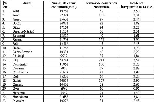 TOP JUDEŢE COVID-19. Cele mai puţine cazuri noi au fost raportate în: