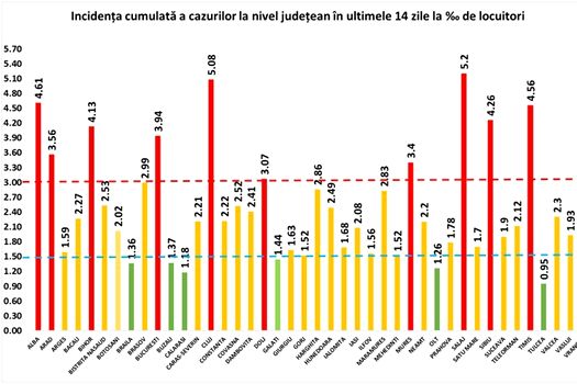 În urma testelor efectuate la nivel naţional, faţă de ultima raportare, au fost înregistrate 7.733 cazuri noi de persoane infectate cu SARS – CoV – 2 (COVID – 19), acestea fiind cazuri care nu au mai avut anterior un test pozitiv.