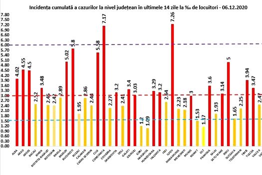 Coeficientul infectărilor cumulate la 14 zile, raportate la 1.000 de locuitori