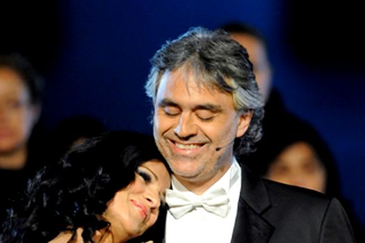 Tenorul orb şi soprana română Angela Gheorghiu au cântat împreună "Ave Maria" de Schubert, "O mio babbino caro" de Puccini, dar şi cântece napolitane clasice, precum "O surdato ‘nnamumurato" şi "Santa Lucia Luntana".