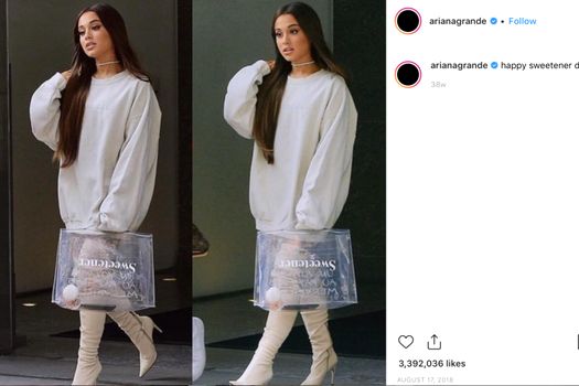 Imaginile au fost încărcate pe reţeaua de socializare online pe data de 17 august 2018. Ele o ilustrau pe artistă având o geantă transparentă, inscripţionată cu titlul celui de-al patrulea album al său, „Sweetener”.