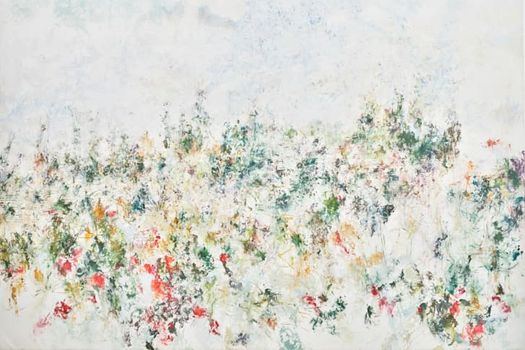 Va mai trece încă un deceniu până când pictura eterică, expusă acum la galeria Villepin din Hong Kong, va fi finalizată. Ca atare, lucrarea descrie nu doar florile vibrante la care face aluzie în titlu, ci şi trecerea timpului în sine.