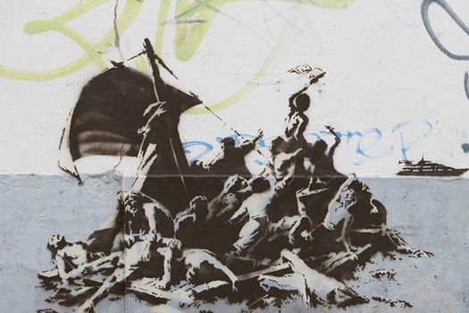 Desenul este unul dintr-o serie întreagă de opere pe care Banksy le-a creat pentru a sublinia efectele generate de criza refugiaţilor. În timpul unei călătorii în Calais, artistul britanic a realizat mai multe desene în graffiti pe zidurile clădirilor din oraşul francez. Toate aceste desene au fost ilustrate apoi în fotografii publicate pe site-ul artistului. Unul dintre desene, pictat pe un zid aflat în mijlocul miilor de corturi din tabăra de refugiaţi din Calais, include mesajul „Nobody deserves to live this way!” („Nimeni nu merită să trăiască în acest fel!”).