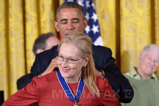 Preşedintele Barack Obama a înmânat luni seară Medalia Libertăţii, cea mai înaltă distincţie civilă americană, unui număr de 18 personalităţi, inclusiv actriţei Meryl Streep, şi a dezvăluit în timpul ceremoniei că are pentru celebra artistă o admiraţie fără limite, informează AFP.