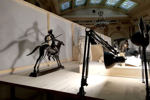 ”Arta momentului cred că este vorba mai mult despre interacţiune şi stare”, a spus Mihai Zgondoiu pentru MEDIAFAX. Astfel, în palatul de la Universitate se găsesc şi sculpturile realizate de Sorin Pătrăşcanu pornind de la desenele elevilor săi de şcoală primară, dar şi instalaţii precum ”Rendering”, a lui Sebastian Oară ori White Noise, de Dona Arnakis şi Animal Totem, de Cătălin Velea, aşezate faţă în faţă.