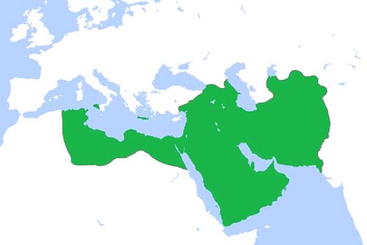 Califatul Omeiad se întindea pe 5,79 milioane de mile pătrate (apr. 14,9 milioane km pătraţi) în perioada sa de apogeu din secolul 7, înainte să fie înfrânt de abasizi, în 750.