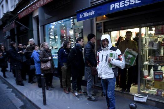 „Este incredibil. Aveam o coadă de 60-70 de persoane în faţa magazinului, când am deschis”, povesteşte administratora unui chioşc din Paris. „N-am văzut niciodată aşa ceva. Cele 450 de exemplare pe care le aveam au dispărut în 15 minute”, a adăugat ea.