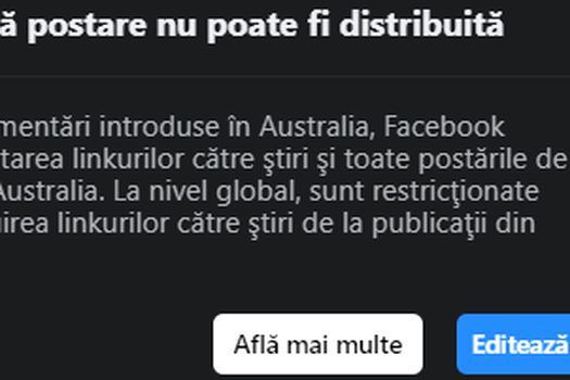 Foto: Captura. Explicţie: Acesta este mesajul pe care utilizatorii din întreaga lume îl primesc când incercă să distribuie o ştire ce apariţie unei companii media din Australia
