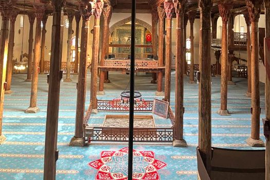 Moscheea Ahi Şerefeddin din Ankara, la doar 1,5 ore cu trenul de mare viteză de Eskişehir, este o minune arhitecturală, în ciuda aspectului său simplu. Structura din epoca Seljuk este cunoscută şi sub numele de Arslanhane (Casa Leului) pentru statuia antică a leului de marmură de pe peretele interior al mormântului. Moscheea cu un singur etaj, cu 24 de coloane din lemn şi capiteluri de marmură, exemplifică armonia spoliei şi a lemnului.