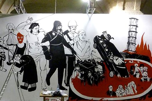 Fresca prezintă un reactor nuclear în flăcări, lângă care sunt preoţi şi judecători scufundaţi pe jumătate în lichid roşu. O maşină care se pare că transportă persoane oficiale cade în acest lichid. Acest ultim detaliu ar putea face referire la accidentele mortale produse cu maşini oficiale. Unul dintre personaje se aseamănă cu Irina Kraşkova, o femeie care a acuzat doi poliţişti şi un civil că au bătut-o şi violat-o.