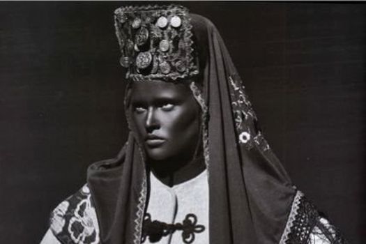 Supermodelul german Lara Stone a apărut cu faţa şi corpul colorate maro închis pentru o serie de fotografii din ediţia de luna aceasta a Vogue.
