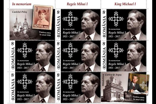 Prin exemplul personal şi prin viziunea sa politică, Regele Mihai I a fost unul dintre cele mai importante repere ale tumultoasei tranziţii româneşti de la totalitarism la democraţie. A traversat în postură oficială cel de-al Doilea Război Mondial, a devenit apoi, după decembrie 1947, exponent al exilului românesc şi a revenit în ţară la câţiva ani după căderea regimului comunist. În semn de profund respect pentru ultimul Rege al României, Romfilatelia introduce în circulaţie marca poştală „In memoriam, Regele Mihai I (1921-2017)”, miercuri, 13 decembrie 2017, cu valoarea nominală de 8 lei, ilustrând portretul şi monograma Regelui. Emisiunea este disponibilă în magazinele Romfilatelia din Bucureşti, Bacău, Braşov, Cluj-Napoca, Iaşi, Timişoara, precum şi în magazinul online: http://romfilatelia.ro/store/.
