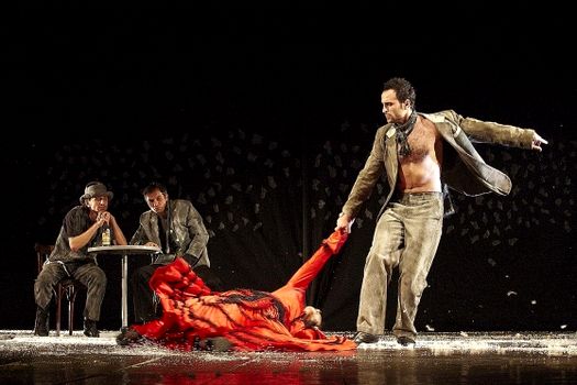 Spectacolul îi are în distribuţie pe Vadim Rusu, Nadejda Dimitriu, Petru Ciobanu şi Petrică Voicu.