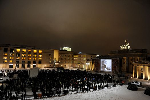 Tot vineri, la Berlin a avut loc proiecţia specială a filmului „Metropolis”, în regia lui Fritz Lang, realizat în 1927, prezentat pentru prima dată în 83 de ani în versiune completă, după ce bucăţi din film, pierdute cu zeci de ani în ură, au fost recuperate în 2008. „Metropolis” a fost proiectat pe Poarta Brandenburg, proiecţia de gală a filmului mut beneficiind de un concert susţinut de Berlin Radio Symphony Orchestra.