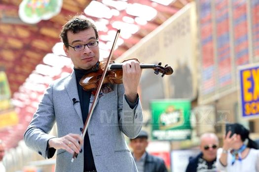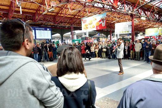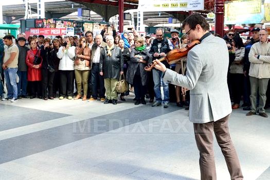 Joi, la ora 12.00, Alexandru Tomescu intra pe peronul Gării de Nord pentru a încânta călătorii cu piesele compozitorului George Enescu, interpretate la vioara Stradivarius Elder-Voicu.