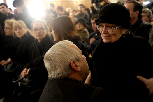 Cei prezenţi la Teatrul Naţional l-au aplaudat minute în şir pe maestru, după încheierea slujbei de pomenire, oficiată de un sobor de trei preoţi de la Biserica Icoanei din Capitală.