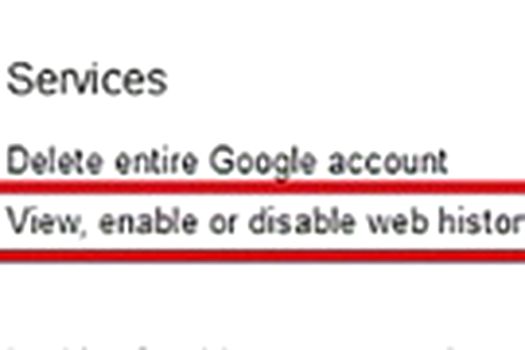 2. După ce aţi făcut acest lucru, căutaţi opţiunea „Services” (Servicii) unde veţi găsi o căsuţă intitulată „View, enable or disable web history” (Vizionaţi, activaţi sau dezactivaţi istoricul web). Daţi click pe această căsuţă.