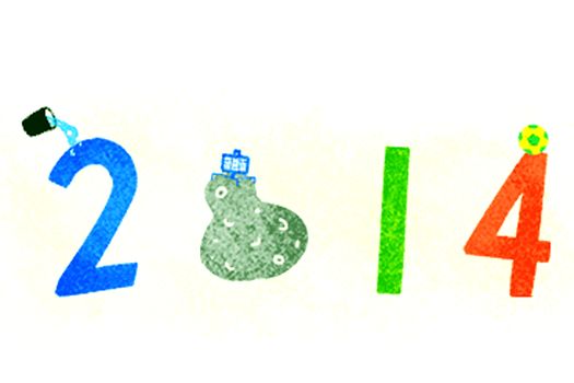 Logoul pregătit de Google pentru a marca Anul Nou prezintă, într-un mod interactiv, literele care formează numele motorului de căutare. Totodată, anul 2014 este împodobit cu diverse elemente, precum o găleată din care curge apă pe cifra 2 şi o minge de fotbal pe cifra 4, obiect care se regăseşte şi printre literele care alcătuiesc cuvântul Google.
