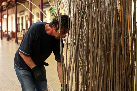 Specializat în arta tradiţională a împletiturilor din răchită, artistul francez a creat un complex de instalaţii efemere din răchită şi crengi fixate pe sol, care vor schimba perspectiva asupra Gării de Nord.