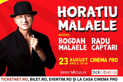 Spectacolul „Ediţie Specială”, în care Horaţiu Mălăele este secondat de fiul său, Bogdan Mălăele şi de muzicianul Radu Captari, va fi prezentat publicului pe scena Cinema PRO din capitală, miercuri, 23 august, începând cu ora 19.30. Pentru spectatorii prezenţi, seara va continua cu proiecţia gratuită a filmului „Funeralii Fericite”, o comedie în care Horaţiu Mălăele poate fi regăsit atât în ipostaza de actor, cât şi în cea de regizor.