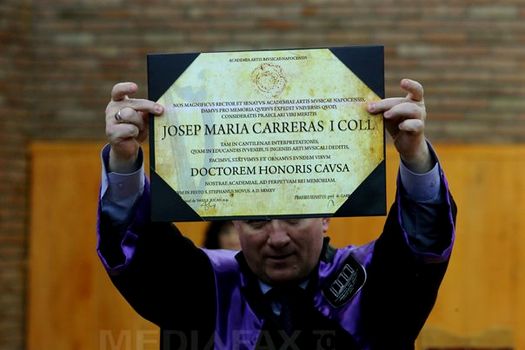 „Este o onoare să primesc acest titlu din partea Academiei de Muzică din Cluj, una dintre cele mai active instituţii muzicale din România. Legătura mea cu România durează de mult timp şi mă bucur că muzica mea este apreciată de publicul românesc, care respectă munca mea. Muzica este vocaţia mea de când eram copil, este viaţa mea. Nu este o mai mare profesie în viaţă decât muzica”, a spus Carreras.