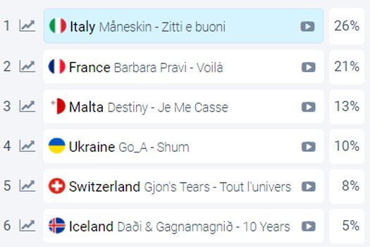 Favoriţii ediţiei Eurovision Song Contest 2021 sunt reprezentanţii Franţei şi Italiei, dar tot în fruntea clasamentului realizat de casele de pariuri se află şi ţări precum Malta, Ucraina, Elveţia sau Islanda.