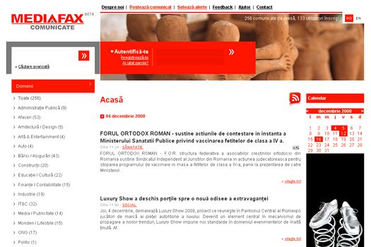 Noul site realizat de Mediafax, cel mai mare furnizor de informaţie generală şi de afaceri din România, este un instrument flexibil şi interactiv prin care clienţii pot posta singuri comunicate multimedia (text, foto, audio şi video) şi pot dezbate informaţiile din acestea cu utilizatorii înregistraţi ai www.comunicate.mediafax.biz, prin intermediul comentariilor de pe site.