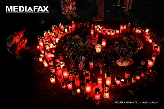 11. Un copil priveste candele aprinse asezate in forma de inima, in timpul unui protest in fata Guvernului Romaniei, in Piata Victoriei din Bucuresti, marti, 30 iulie 2019. Aproximativ 100 de persoane au participat la un protest in Piata Victoriei din Bucuresti, in contextul in care au fost facute publice convorbirile dintre Alexandra, una dintre victimele de la Caracal, si operatorul de la 112. ANDREEA ALEXANDRU / MEDIAFAX FOTO